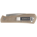 High quality Gerber Mansfield Micarta folding knife that features an elegant design. A classic knife in a modern coat with a D2 steel blade, plain edge blade and a zero edge Scandinavian grind. Perfect knife for woodworking. Features an ergonomic non-slip Micarta grip.