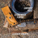 Who says knives have to fold to be carried in pocket? The Stowe is a small yet mighty tool that blends the strength of a fixed blade and the compact carry of a folder. The leather sheath caters to multiple ways to carry with a sturdy loop for on belt and a small footprint for in pocket.